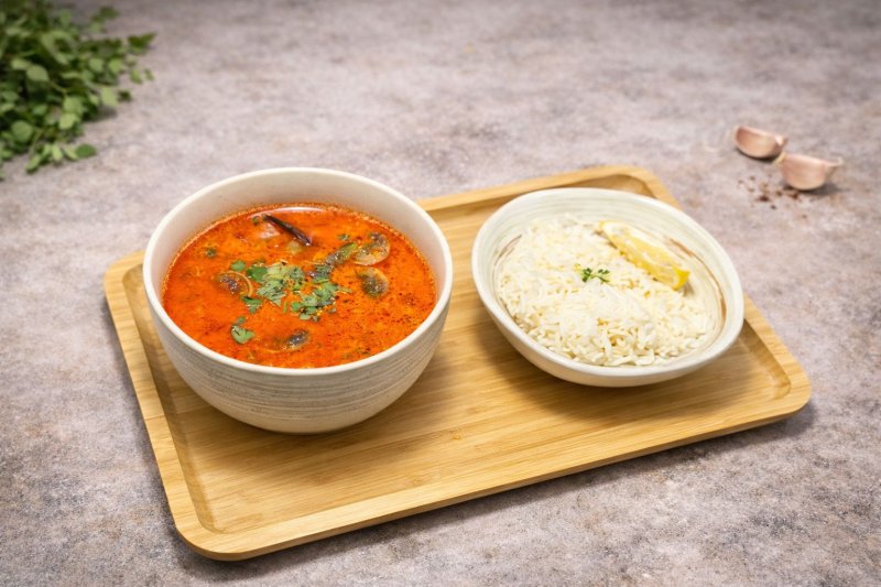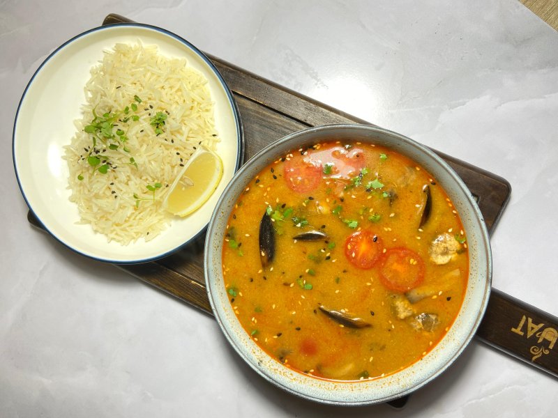 Том-ям Тхале Японский суп с морепродуктами тигровые креветки, мидий, филе судака, шампиньоны и с кокосовым молоком 3190 ₸