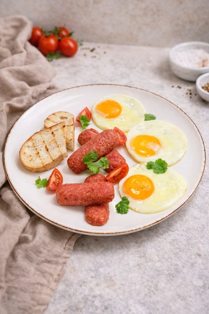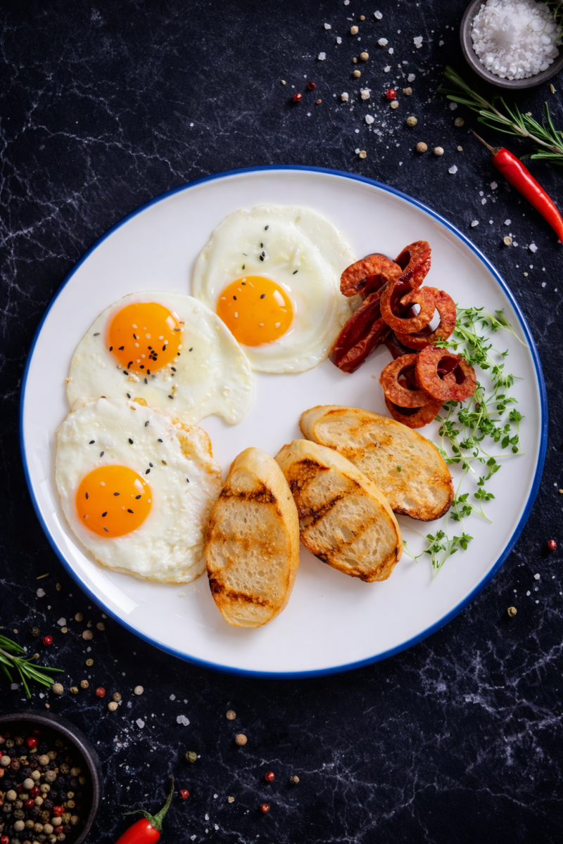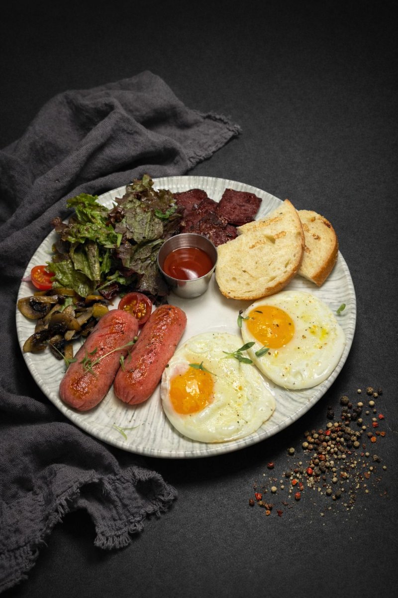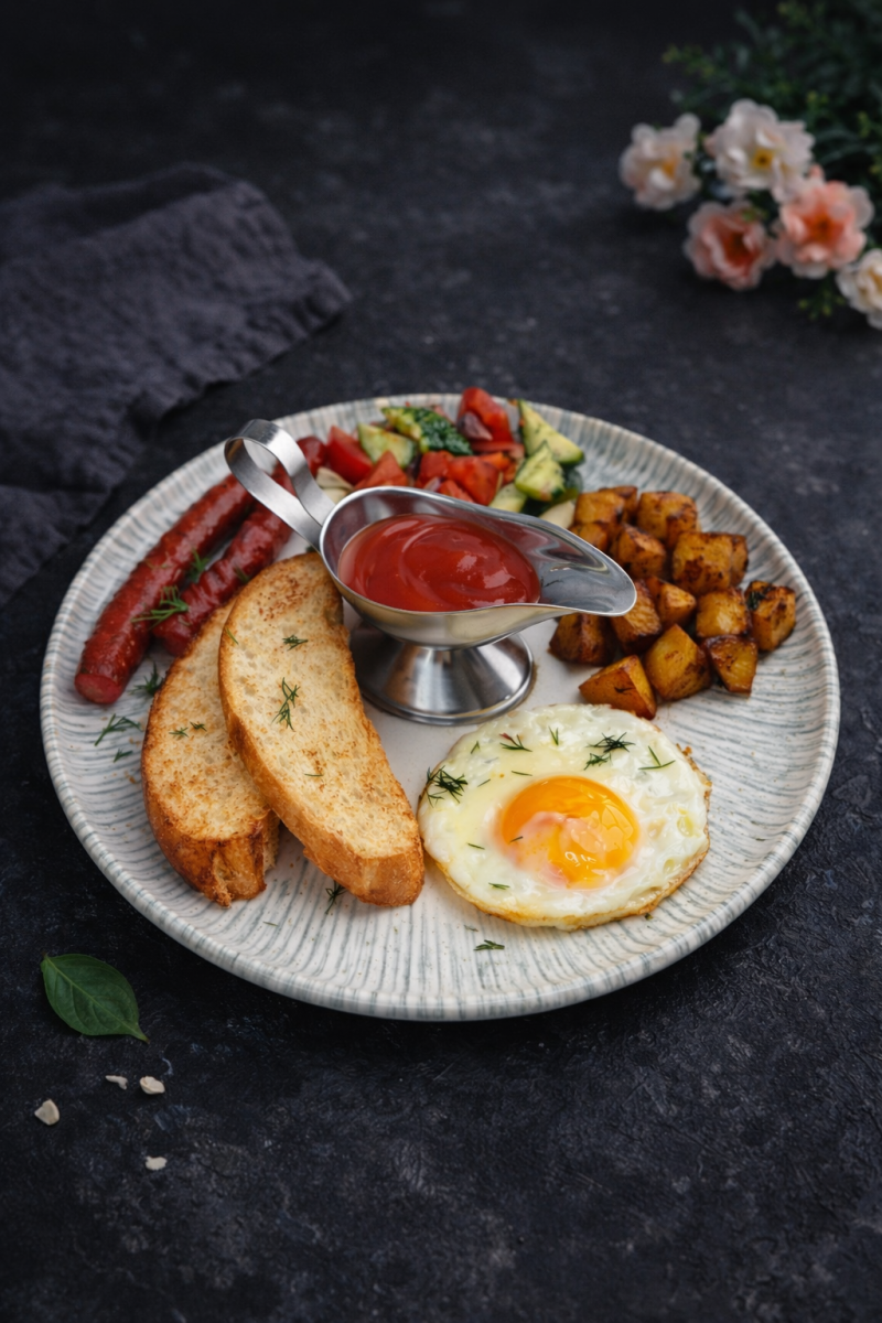 Английский завтрак Домашние колбаски нежные шампиньоны, глазунья, копченная говядина, микс салата с ярким соусом сальса 2090 ₸