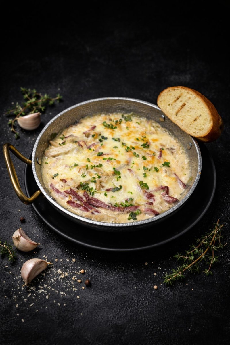 Жульен с копченной телятиной Пора экспериментировать шампиньоны в сливочном соусе, с копчеными кусочками мяса молодого теленка – буквально будет таять у вас во рту! 2290 ₸