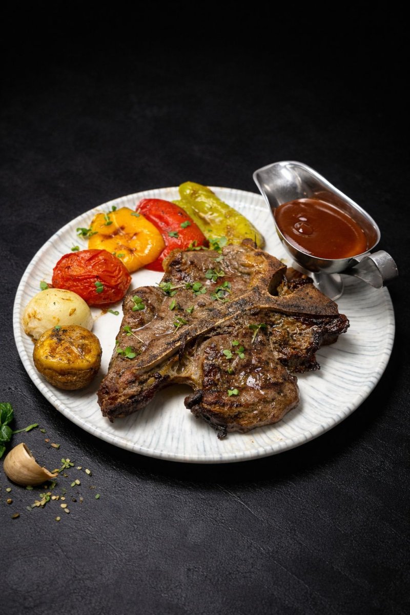 Тибон с овощами на гриле Сочный стейк запеченный в печи с соусом BBQподается с ароматными овощами на гриле 5590 ₸
