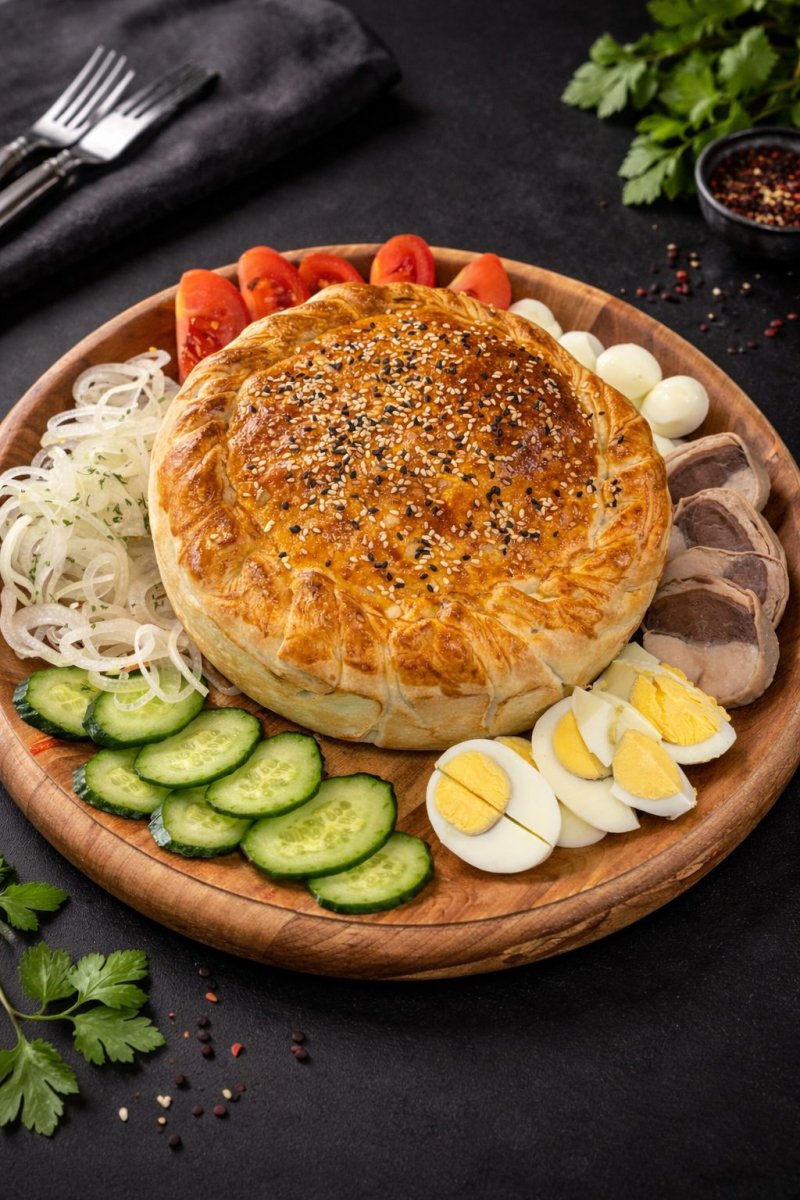 Казы-карта әсіп Казахское традиционное блюдо, сочные казы, карта, асип подается со свежими листьями салата, томаты черри. 2790 ₸