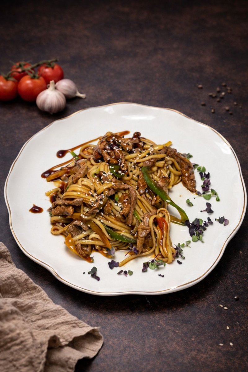 Босо лагман Блюдо любви! Жареная лапша, подлив из мяса телятины, посыпается ароматной свежей зеленью. 1890 ₸