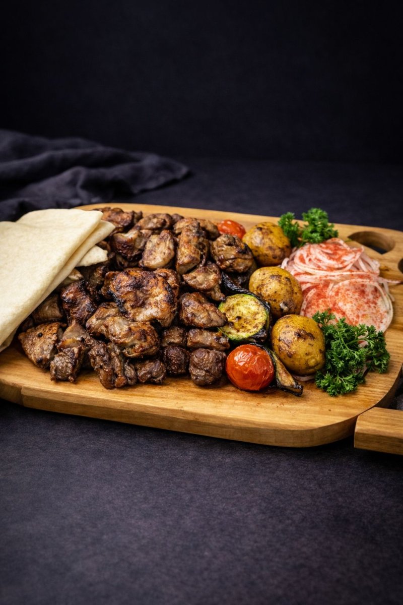 Микс «NAUAT» (кусковой баранина, кусковой говядина, окорачка, крылышки, овощной шашлык, печень пленка, люля кебаб баранина, картошка на мангале) 13990 ₸