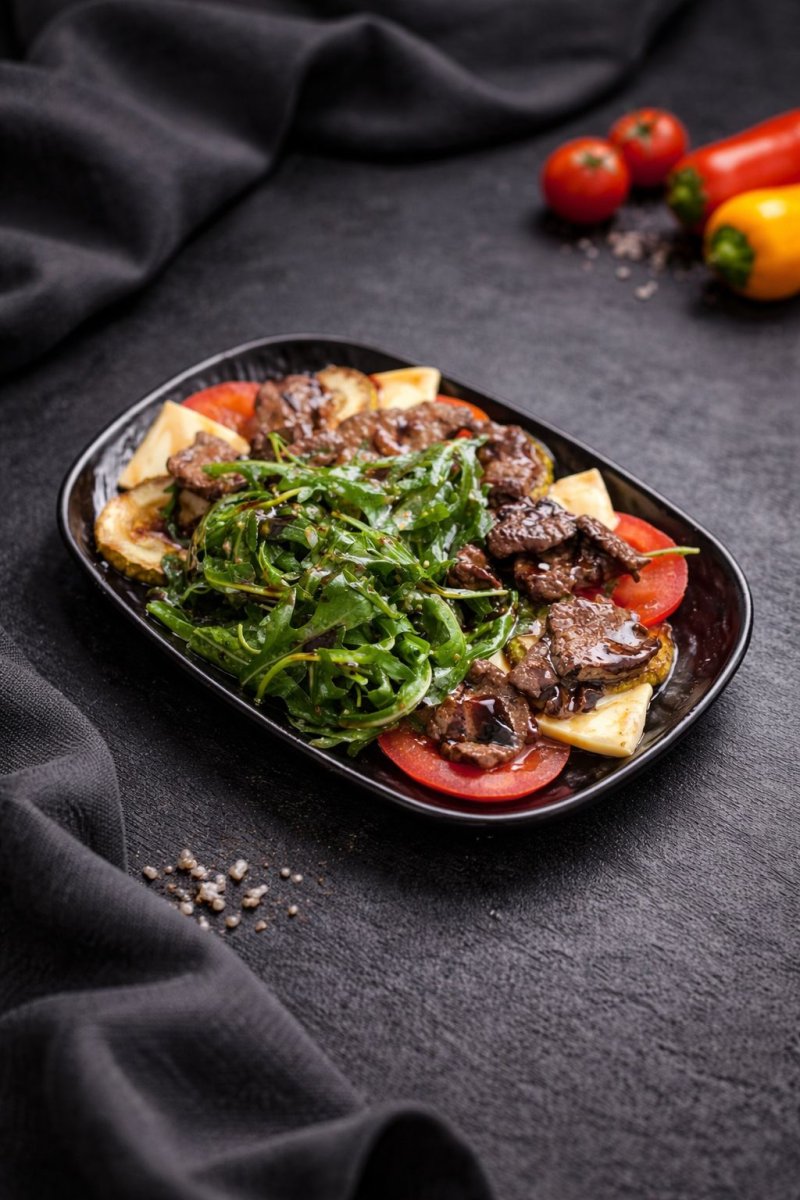 Салат «Тайский» Томаты, огурцы, говядина, перец светофор, ароматная кинза, кунжут, насыщенный вкус соевого соуса – легкий и оригинальный салат. 2190 ₸