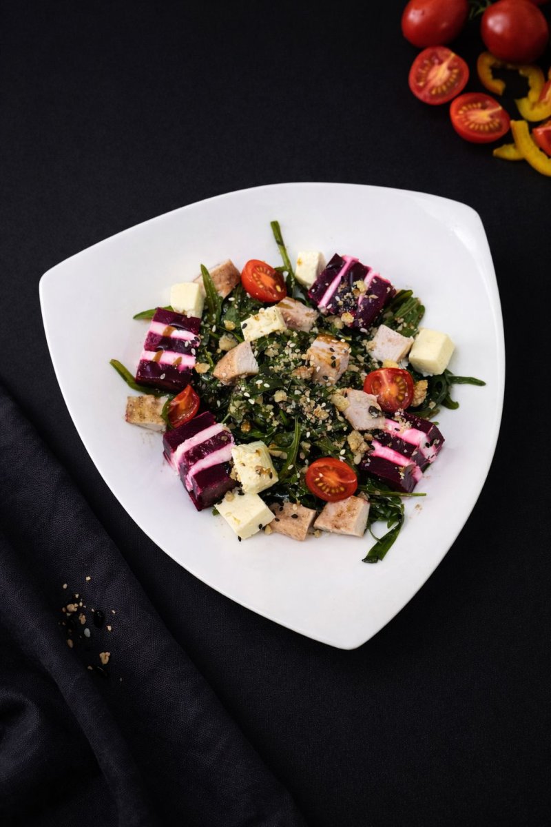 Греческий томаты, оливки/маслины, перец светофор, греческий соус, сыр фетакса – отличный вариант для легкого ужина! 2590 ₸